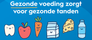 Als je gezond eet en drinkt, blijven je tanden sterk en blij. Eet lekker veel groenten en fruit, en pas op met dingen waar veel suiker in zit.